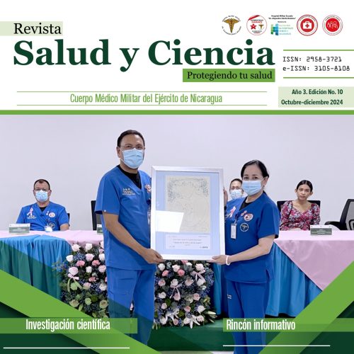 El Cuerpo Médico Militar del Ejército de Nicaragua tiene el honor de presentarte la Revista Salud y Ciencia, Protegiendo tu salud, un nuevo canal de comunicación científica médica dedicado a la divulgación de avances, resultados, protocolos y estudios sobre temas relevantes a nivel nacional e internacional, vinculados a la prevención, atención y formación de recursos humanos en el ámbito de la salud.